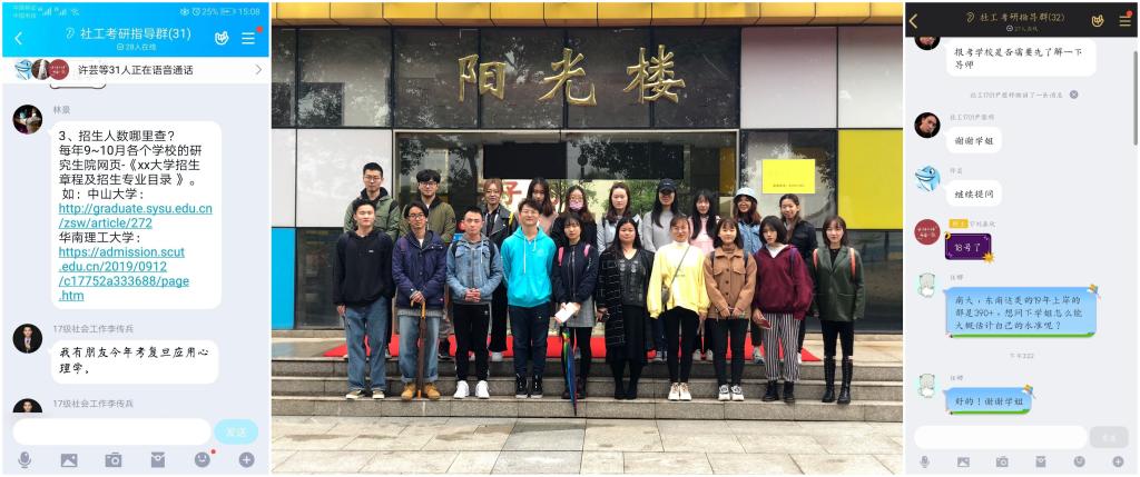 星光不负赶路人,时光不负有心人。今年受疫情影响采取的线上复试的形式给考研增加了更多的不确定因素,但社工1601班的考研学子们都坚持不懈地朝着自己的目标前进,同学间也互相激励,互相帮助,共同进步。除此之外,社会工作专业的老师们也提供了相当大的帮助,搭建考研平台、提供考研服务,给予考研学子更多的关心、指导和帮助,无论是专业知识解答、出国院校推荐、考研经验分享还是舒缓备考压力,老师们一直陪伴在他们身旁,与他们一同前行。