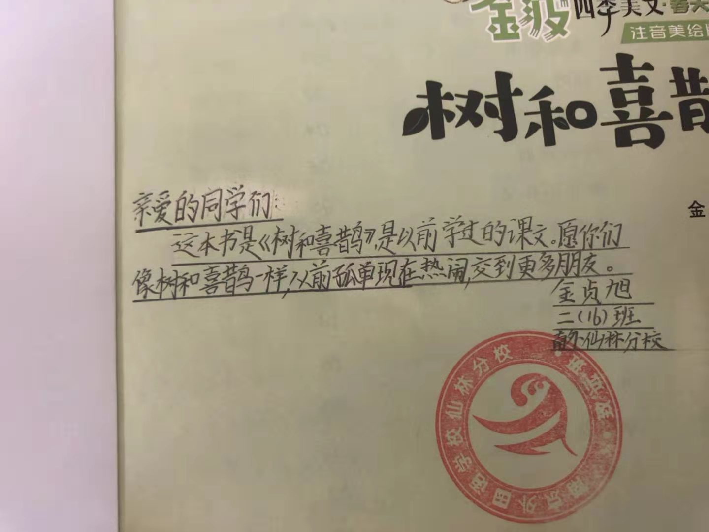 2020年暑假,我院师生通过募捐的方式为长城小学建设了一个爱心图书室,也募集了300多本图书,但是整体数量上还不够多,种类也不够丰富。2021年6月,南京外国语学校仙林分校小学部二(16)班的孙珝清和王紫慧同学,在得知我院有为甘肃省武威市长城小学的捐书助学行动后,首先在班级进行了倡议,得到了班上小朋友们的积极响应,纷纷表示要把所在班级图书角的所有图书都捐出来,传递给远在千里之外的小学,并且还把自己家里最喜欢的书拿出来,认真地在书的扉页写上了温暖的祝福话语和读书心得,以独特的方式与对方小学生进行对话。在2019级二(16)班的号召下,其他各年级也踊跃参与,最后得到了来自一年级、二年级、五年级和六年级50多个班级的捐赠。
