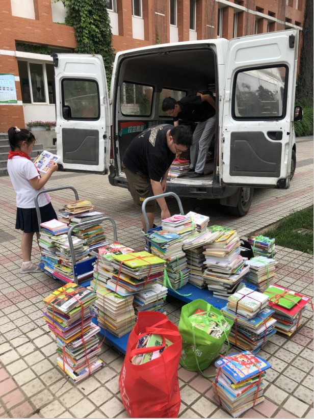 6月30日上午,我院社会工作系的李丁一、王骥、尤子豪、李蕊君、王梦璐五位大学生来到南外仙林分校小学部,把各年级捐的书打包整理好,装了满满一车,直接寄往了甘肃省武威市长城小学。李丁一从早上9点半开始搬书,一直忙到下午2点半,连午饭都没来得及吃,热得满头大汗,但是却说:“虽然很累,但是想到这些书能够给孩子们带去丰富的精神食粮,内心充满了力量。”