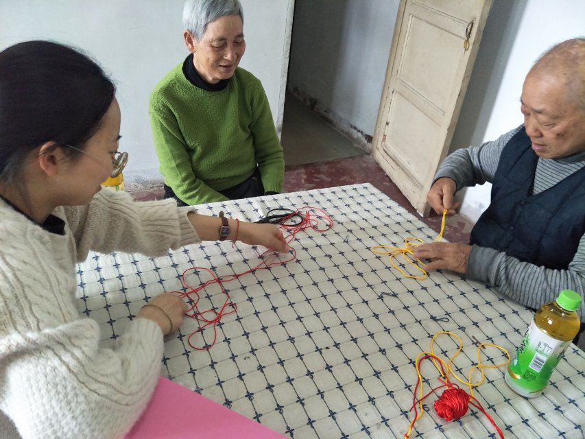 原本不会编织中国结的成员们自学成才,提前通过网络教程学会了几种中国结的编织方法。活动现场,老人们和团队成员一边学习编中国结,一边交流。残障老人由于年龄和身体的问题,在刚开始学习编的时候有点困难,但是在团队成员的耐心指导下很快掌握了一种中国结的编织方法,并编出了一个个漂亮的中国结。老人们看着自己的成品都非常开心,表示要继续学习,掌握更多的编织方法。在编织的过程中,团队成员和老人们愉快地交流,了解到了更多的情况,与老人们的关系也更加紧密,再次评估了老人们的需求。编织中国结可以让老人们活动手指,手眼同时使用,在预防老年痴呆等方面有着很好的作用,同时,老人们也可以通过编织中国结来打发时间,减少内心的空虚感,对于老人们的心理健康状况有着很好的帮助。