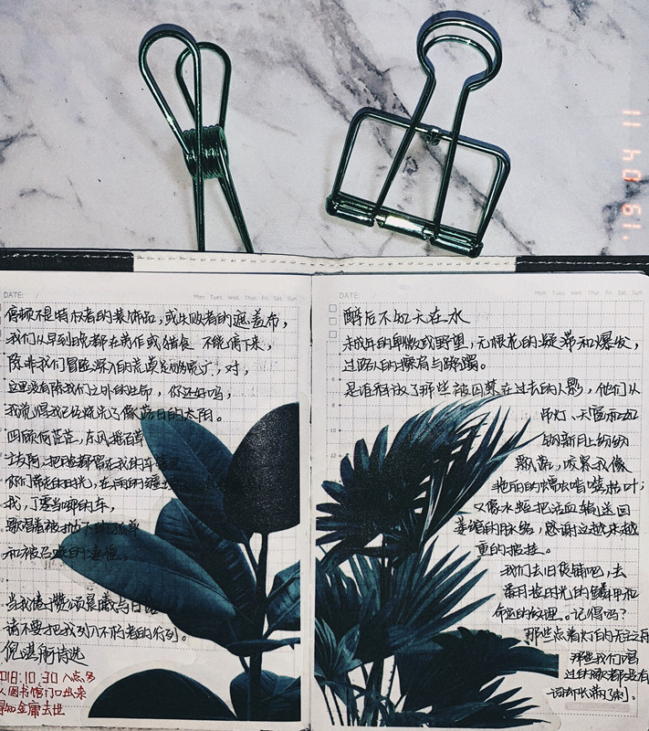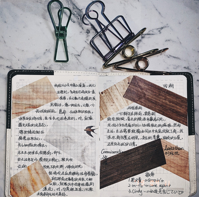 脱离于简单的文字摘抄,同学们自己设计拼贴的手账照片,精美的图案以及精心制作的排版,能够看出这些手账爱好者们对生活、对阅读的尊重。