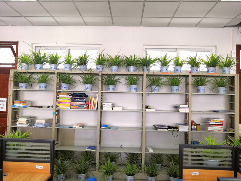 5月14日,法学院新装修好的光明考研教室迎来许多绿植,学院采购了60盆金边吊兰等植物。