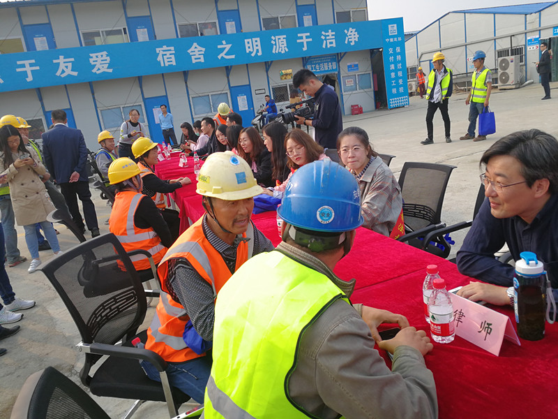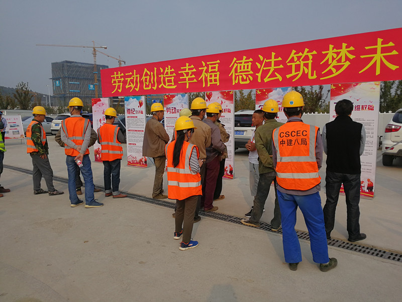 10月17日下午2:30,我院联合栖霞区司法局、区总工会、区住建局、团区委在中建八局第二十八所建设项目工地,开展“尊法守法·携手筑梦”服务农民工法治宣传活动。法律援助律师、法律服务志愿者、中建八局建筑工人等一百余人参加活动。