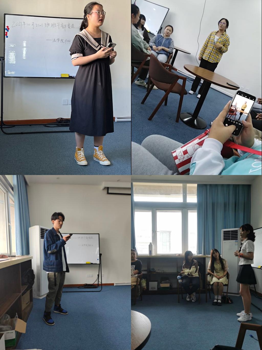 2021年10月5日至7日,我院在德正楼439王佩图书室开展了本科2021级班干部竞选活动。本次竞选活动中,法学本科2021级同学踊跃报名参加。各位参与竞选的同学仪态得体大方,口齿清晰,侃侃而谈,自信地进行了3分钟的竞选演讲,充分表现出了对于我院班级工作的支持与热情。