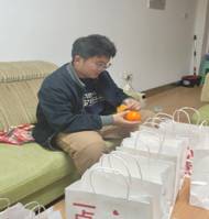 备好礼物后,大三副班长字建宇作为学生代表在德正楼社工实验室内,将助力包送与大四学生。王彦伟收到后,感到非常惊喜:“最近正在冲刺复习,还没来得及准备这些必备文具。感谢老师和同学们的暖心之举,我们会如老师们说的相信自己,坚持到底。”