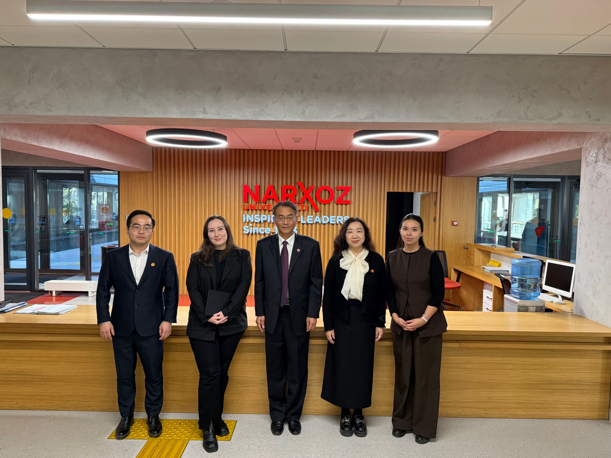 在哈萨克斯坦纳尔霍兹大学(Narxoz University)访问期间,代表团与纳尔霍兹大学国际事务部主任DariyaImadiyeva等就学生交换、教师互访、科研合作及前置中文预科班建设等议题进行深入交流,为两校未来合作奠定基础。