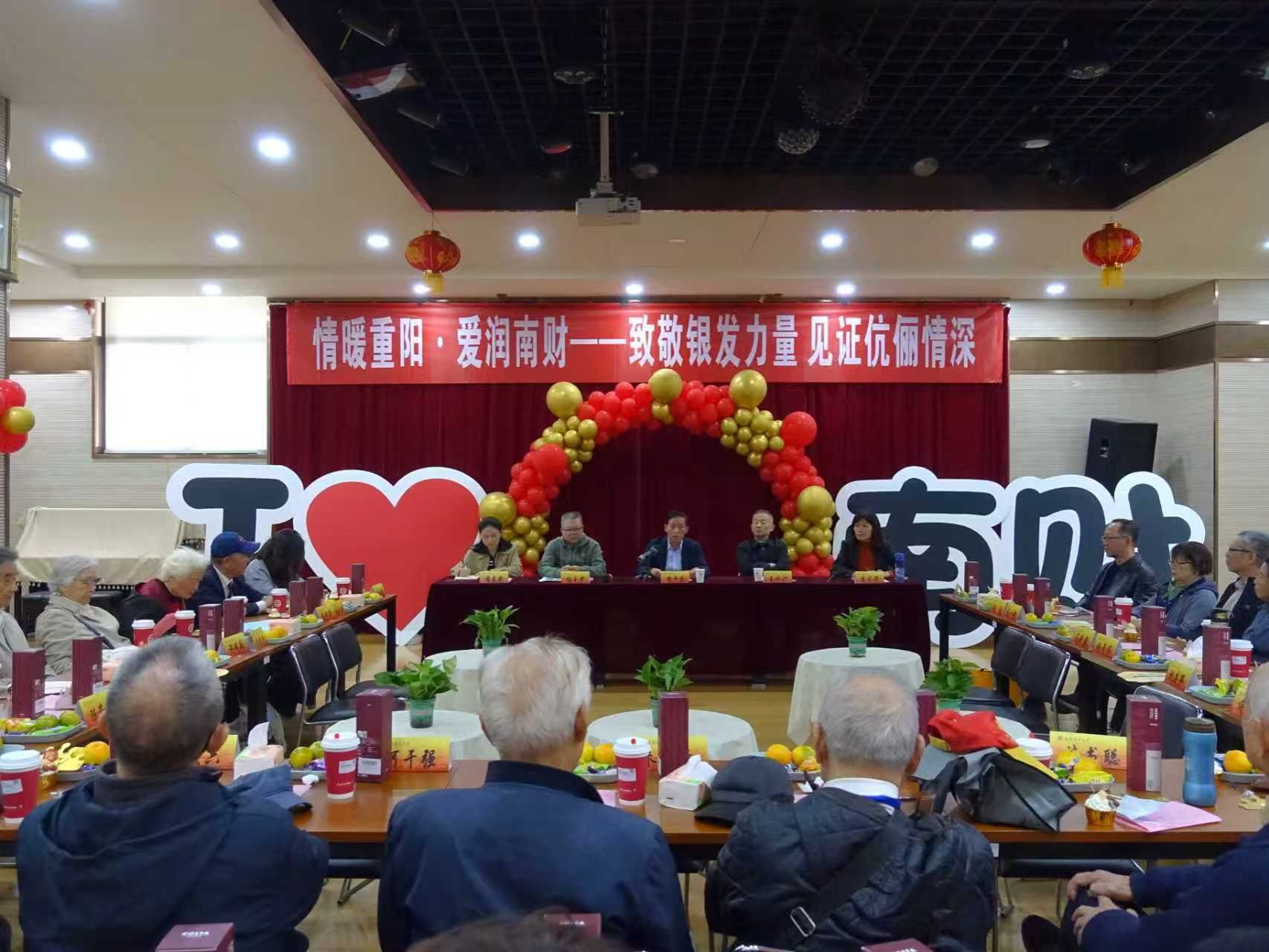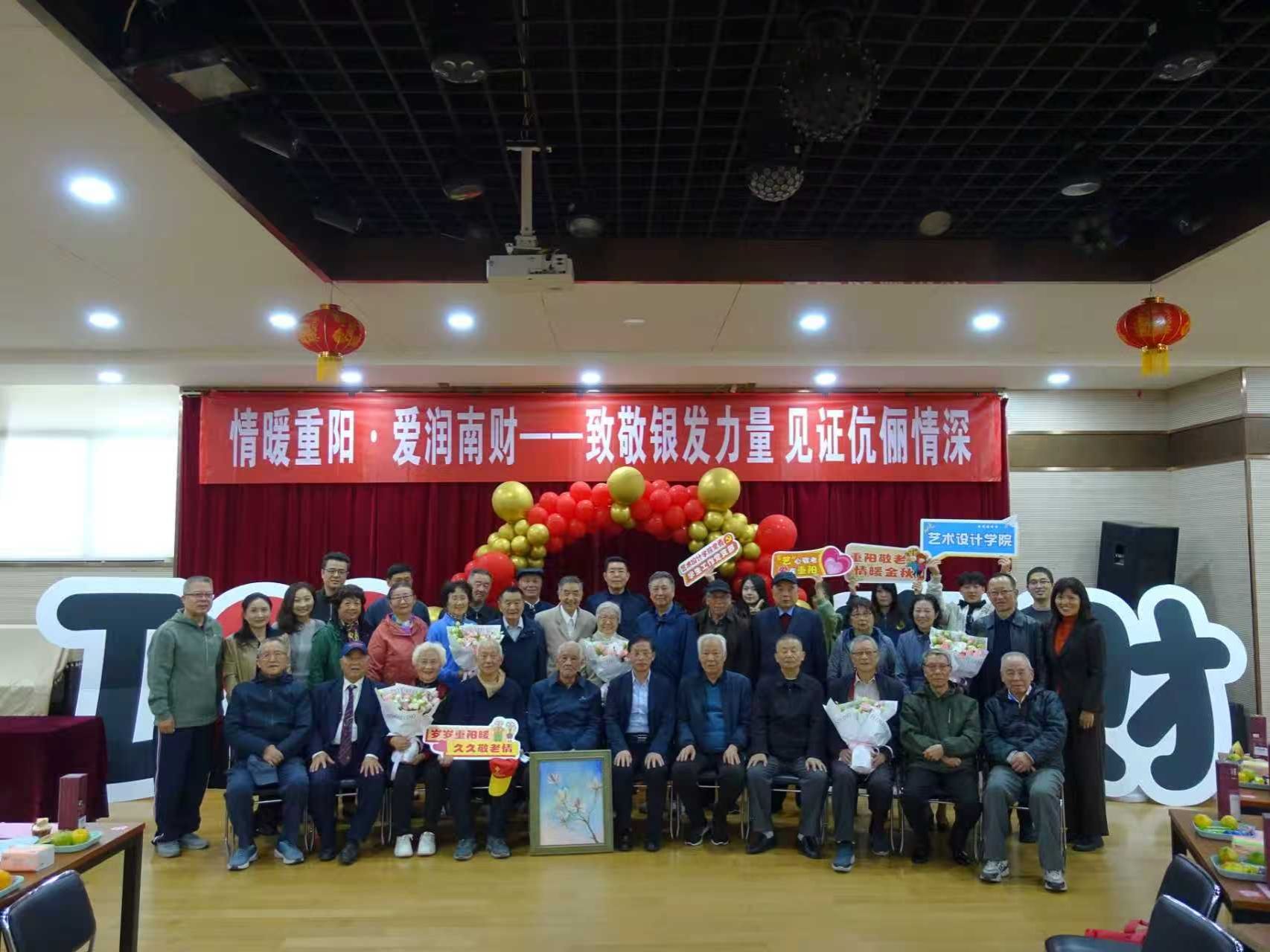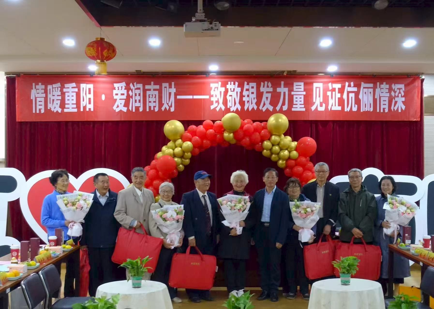 10月28日下午,我校在福建路校区老同志活动中心多功能厅举办“情暖重阳·爱润南财——致敬银发力量 见证伉俪情深”重阳节集体祝寿活动,为年届70、80、90及以上的寿星们集体祝寿,为相濡以沫五十余载的双职工伉俪共贺美满佳缘。党委常委、副校长黄步龙出席活动并致辞,副校级老领导王水汀、老寿星代表及银发伉俪代表齐聚一堂,共同追忆校园往昔岁月,畅叙深厚同事情谊。活动由离退休工作处处长唐习华主持。