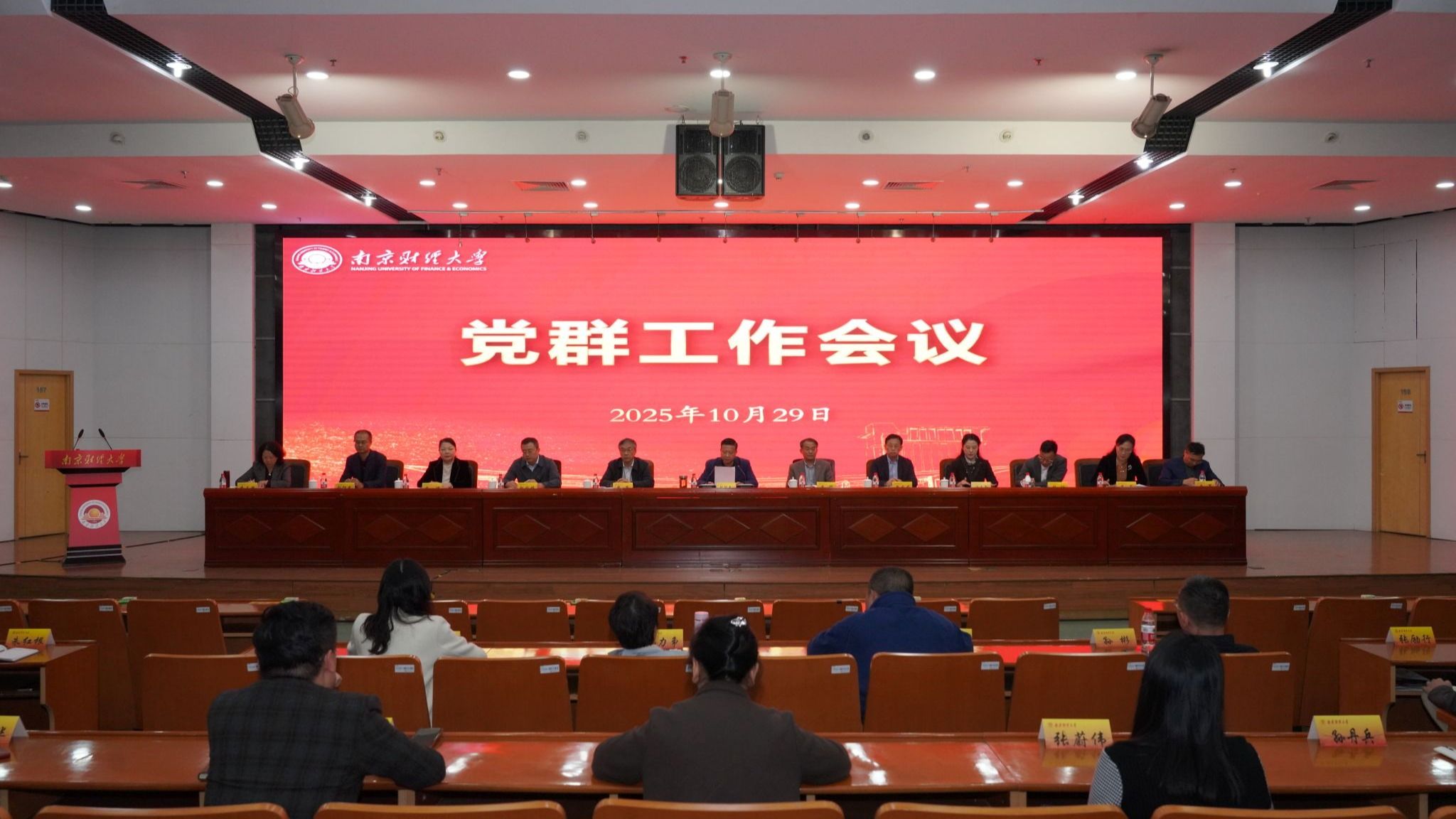 10月29日下午,我校在仙林校区图书馆一楼报告厅召开党群工作会议,传达学习党的二十届四中全会精神,并通报省委巡视集中整改进展情况。全体在校校领导,全体党委委员、纪委委员,全体中层正职干部(含主持工作的副职),区级以上人大代表、政协委员参加会议。会议由校党委书记张利民主持。
