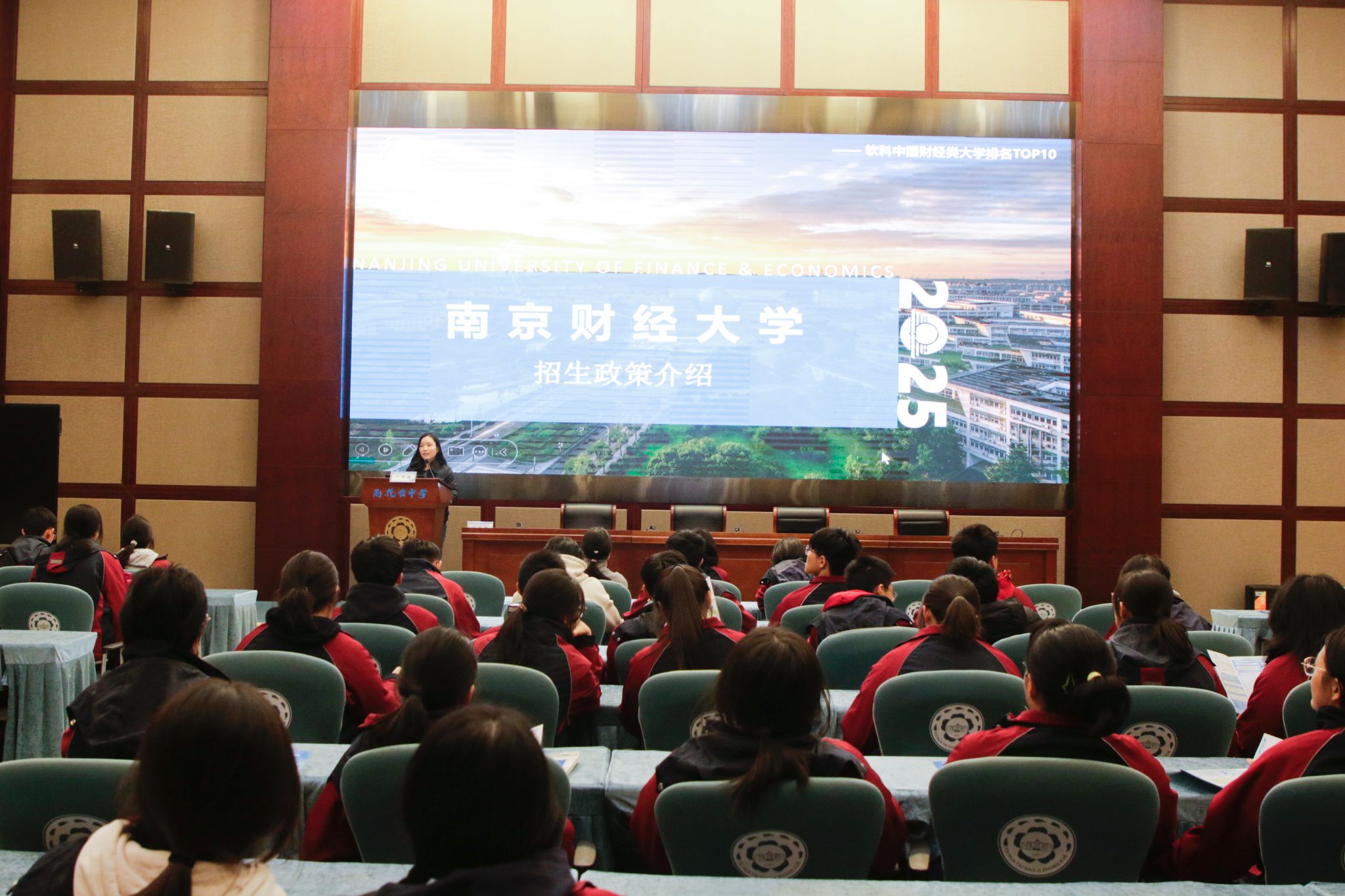 尹海燕副书记面向部分高三学生开展招生宣讲,用鲜活数据和案例展现南财魅力。我校2024级、2025级雨花台中学毕业生代表围绕在校学习生活和生涯发展等学生关注的热点问题进行互动交流,现场反响热烈。