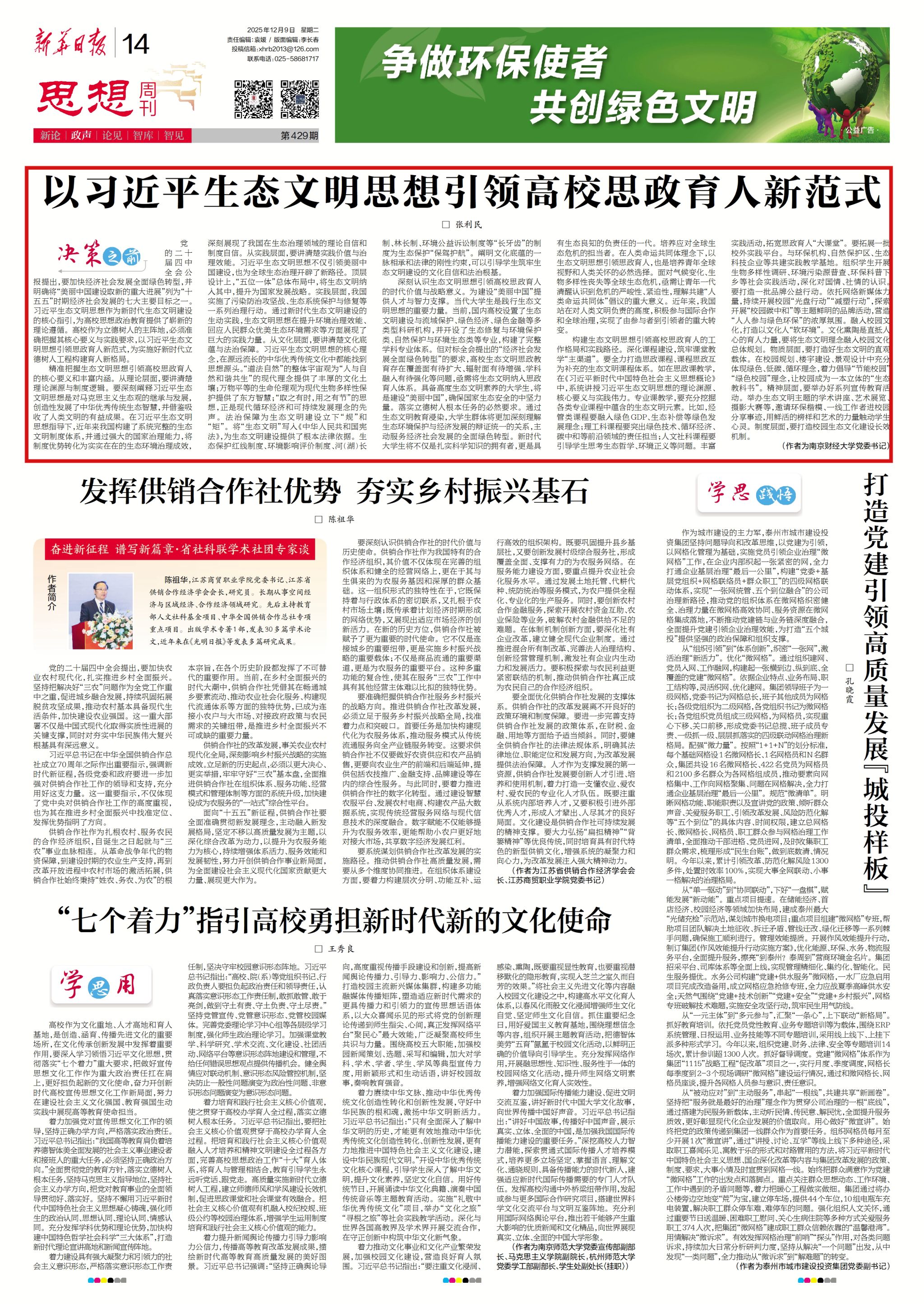 文章强调,要构建习近平生态文明思想引领高校思政育人的工作格局和实践路径。一是要深化课程建设,筑牢课堂教学“主渠道”;二是要丰富实践活动,拓宽思政育人“大课堂”;三是要融入校园文化,打造以文化人“软环境”。