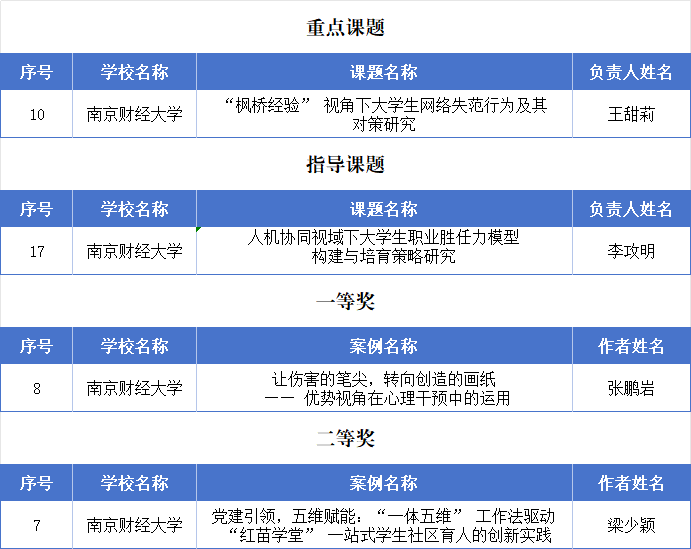 近日,2025年江苏省高等教育学会辅导员工作研究委员会专项课题与工作案例遴选结果公布。我校获批重点项目1项、指导项目1项,工作案例获一等奖1项、二等奖1项。重点项目立项与工作案例获一等奖均系我校在该项评选中取得的新突破,充分彰显了我校辅导员队伍在思想政治工作能力、理论研究水平及实践育人成效方面的协同提升。