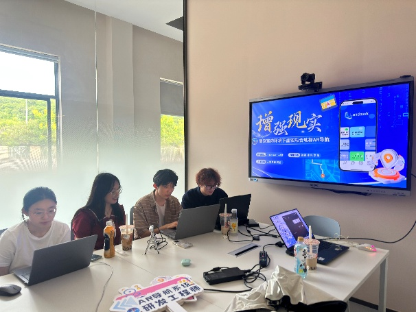 获奖项目聚焦复杂室内环境下的虚实融合地标AR导航技术,成功研发出一套轻量级、低成本、零部署、易普及推广的室内定位导航系统。该系统创新性地将人工智能视觉定位算法与增强现实技术深度融合,可广泛应用于商业综合体、停车场、文博场馆等场景,有效解决了传统室内导航依赖硬件部署、成本高昂、精度不足等行业痛点。为攻克这一项目技术难点、实现最优竞赛表现,团队以“专业课程为基础、教学实训为支撑、产业需求为导向”构建备赛体系,4名队员均为计算机科学与技术专业本科生(朱明慈、吴亦乔、杨陆、王沁园),分别负责算法优化、系统开发、场景测试与交互设计,形成了精准对接岗位需求的分工体系。在朱利涛、李树青两位指导教师的带领下,团队构建了“技术研发-功能测试-迭代优化”的完整工作闭环,精准把握赛题核心,创新性地将人工智能技术与增强现实技术相结合,切实解决了实际应用中的室内定位导航等问题。整个备赛和参赛过程正是学校“学、练、赛、创”一体化人才培养体系的生动实践。