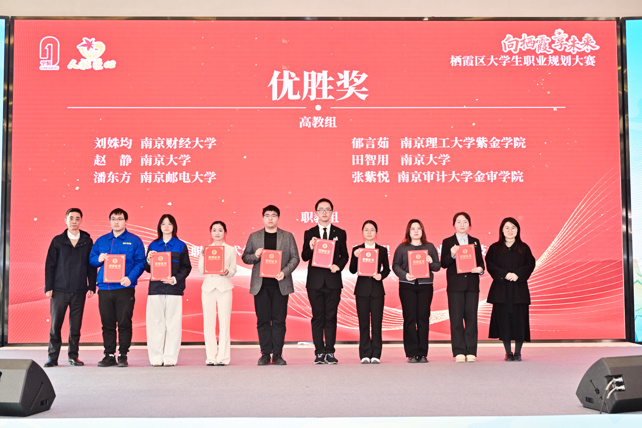 据悉,本次大赛依托政校企协同育人机制,旨在提升区内大学生的职业规划能力与就业竞争力,为栖霞区集聚青年人才、推动区域发展注入新活力。高教组面向驻区普通本科三至四年级(部分专业五年级)学生,吸引了来自南京大学、南京师范大学、南京邮电大学、南京中医药大学等多所高校学子参赛。参赛选手需提交个人简历、求职综合展示PPT及实践实习获奖等证明材料,经高校初审推荐、大赛评审团专业考评,从职业规划的科学性、可行性及综合职业素养等维度评分,最终,评选出一等奖1名、二等奖3名、三等奖5名及优胜奖6名。