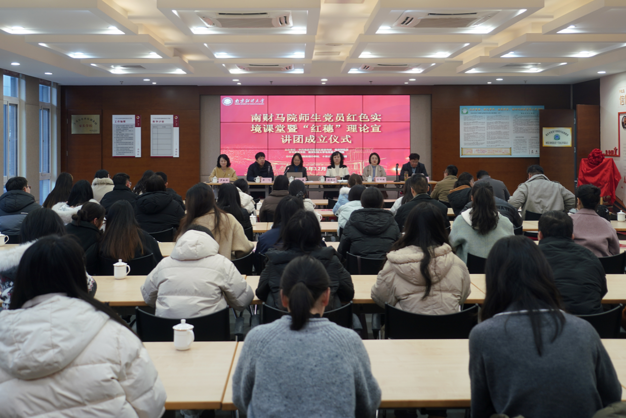 12月24日,党委宣传部、马克思主义学院与栖霞区委宣传部、栖霞街道办事处,在南京十月公社科技创业园联合举办“赓续红色血脉,践行共同富裕”红色实境课堂暨“红穗”理论宣讲团成立仪式。栖霞区委宣传部常务副部长钟漫江、副部长兼文明办主任罗红玲,栖霞区委党史办一级调研员刁志福,我校党委宣传部、马克思主义学院师生党员,校地双方基层理论工作者代表等参加活动。