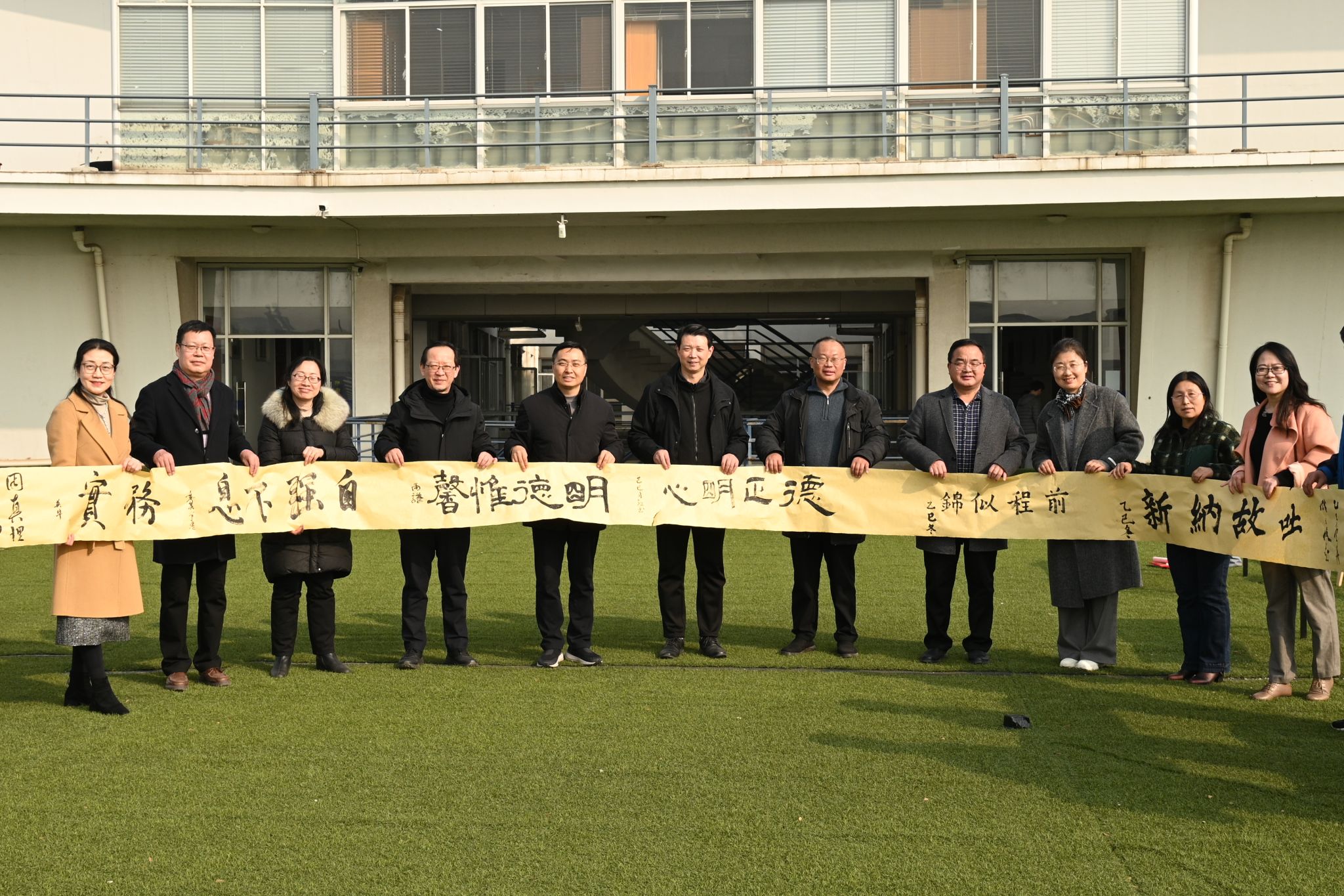 12月30日中午,“明德正心”师生书法笔会在仙林校区德正楼三楼平台举行。活动由外国语学院主办,法学院、马克思主义学院、新闻与文化传播学院、MBA教育中心协办。南京体育学院党委常委、宣传部部长、统战部部长,江苏省直书法家协会常务理事许立俊,我校党委常委、宣传部部长朱军出席活动,相关学院领导、师生代表、校大学生金陵书画社代表参加活动。