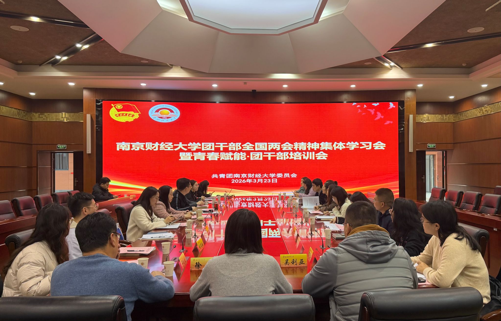 3月23日下午,我校团干部全国两会精神集体学习会暨“青春赋能”团干部培训会在仙林校区工科楼二楼会议室召开。校团委全体成员、兼挂职团干部以及各学院团委负责同志参加会议。会议由校团委副书记胡新蕲主持。