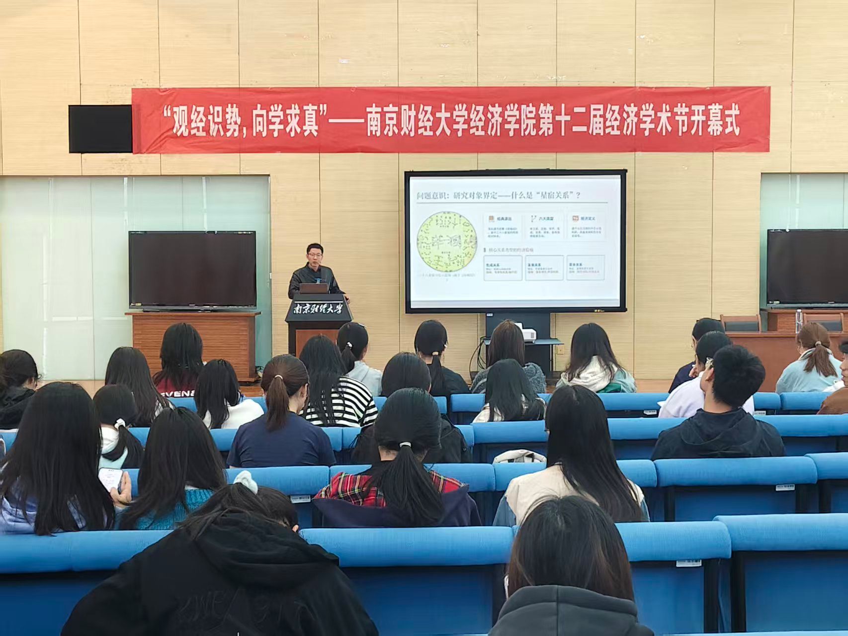 4月8日下午,经济学院在仙林校区图书馆世界之窗举行“观经识势,向学求真”第十二届经济学术节开幕式。经济学院党委副书记贾亦璞、经济系教师师磊、2025级本科生参加开幕式。