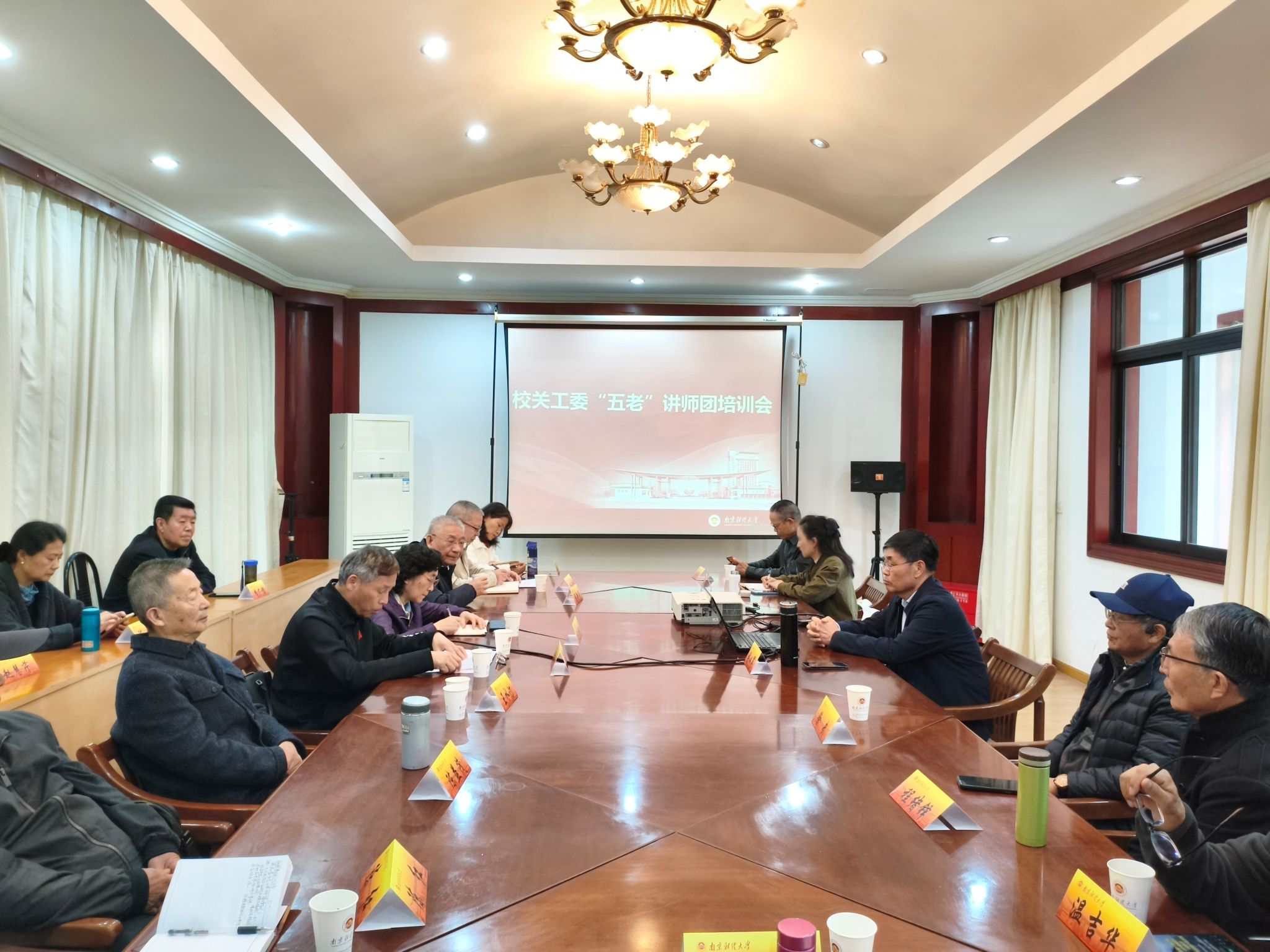 4月14日上午,校关工委在桥头校区沐德苑一楼会议室召开“五老”讲师团2026年培训会。党委常委、副校长、关工委执行主任黄步龙,关工委常务副主任程光熙,副主任董新华、王水汀,校级老领导汤曙东出席会议。校“五老”讲师团成员、“五老”骨干代表、关工委秘书处全体人员参加会议。会议由离退休党委书记杨玉中主持。