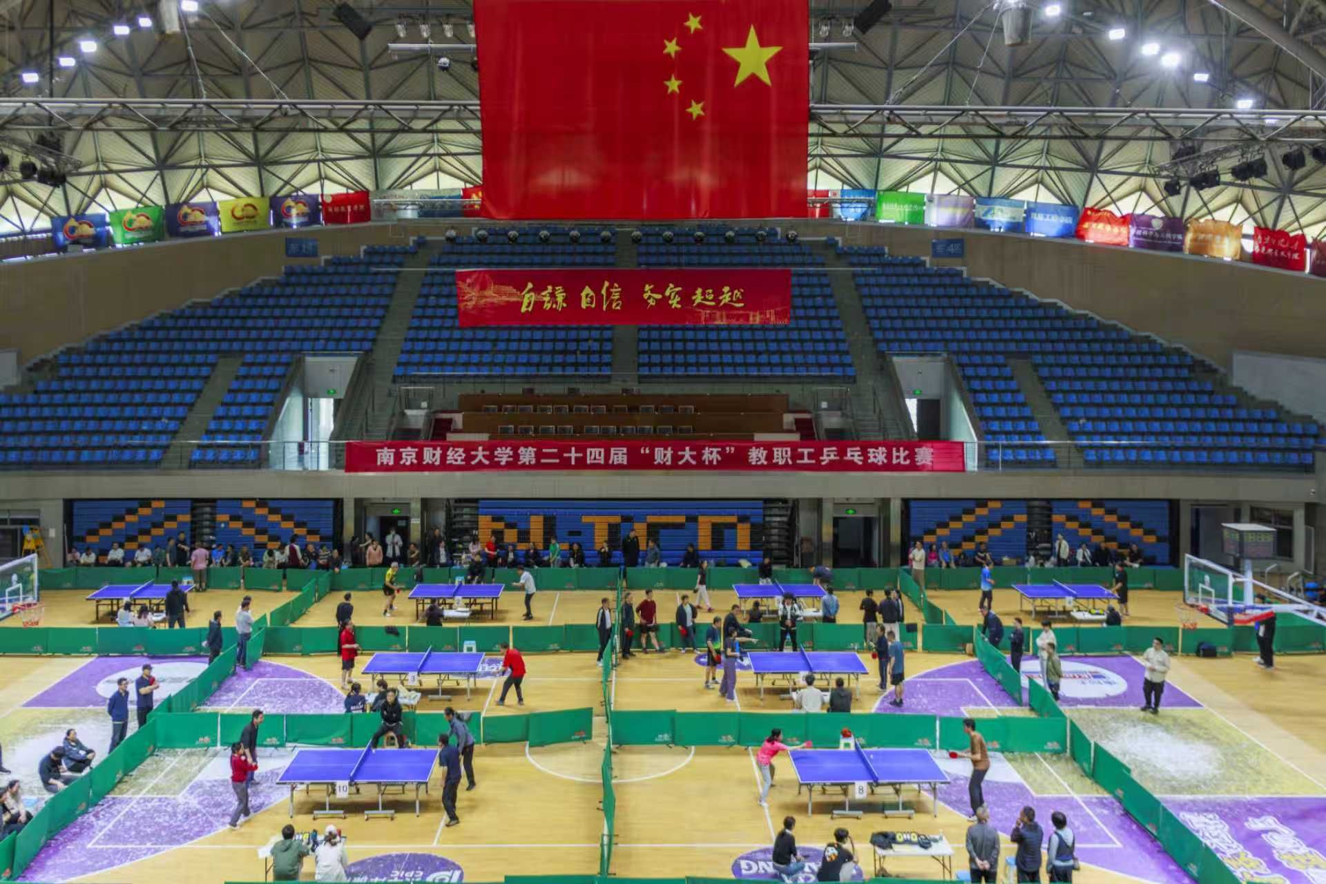 4月25日,由校工会、体育部主办的第二十四届“财大杯”教职工乒乓球比赛在仙林校区体育馆举行。包括校领导代表队在内的22支代表队近200名运动员参加比赛。校党委书记张利民带领校领导队参加比赛,并为其他运动员鼓劲加油。开闭幕式由校工会主席孙丹兵主持。