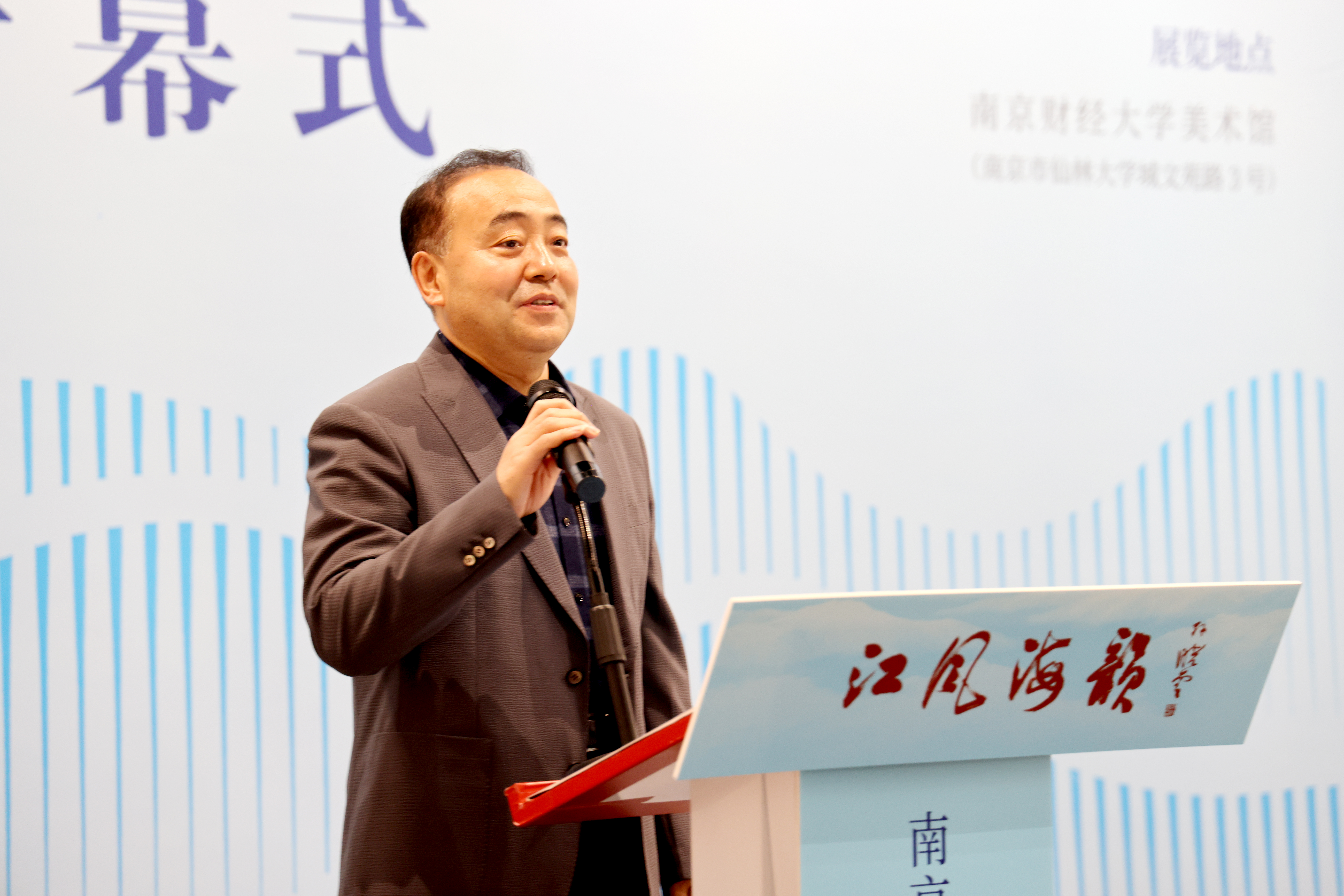 大连市文联副主席、大连市书协主席高玉刚在致辞中回顾了展览的筹备历程。他表示,主动担当社会责任、推动跨地域文化交流是大连市书协一贯的理念。这次展览,江有风,海有韵,笔墨无边界。一边是长江文脉浸润、底蕴千年的金陵雅韵,一边是黄海波涛滋养、山海相依的大连风情,南北相望,笔墨相连。他说:“本次参展的每一幅作品,皆是两地书家用心落笔、用情创作。我们借着一纸翰墨,互学互鉴、取长补短,既切磋书法技艺,也传承中华文脉,更拉近南京与大连两座城市、各位同道之间的心灵距离,让友谊在笔墨中升温,让文脉在交流中传承。”