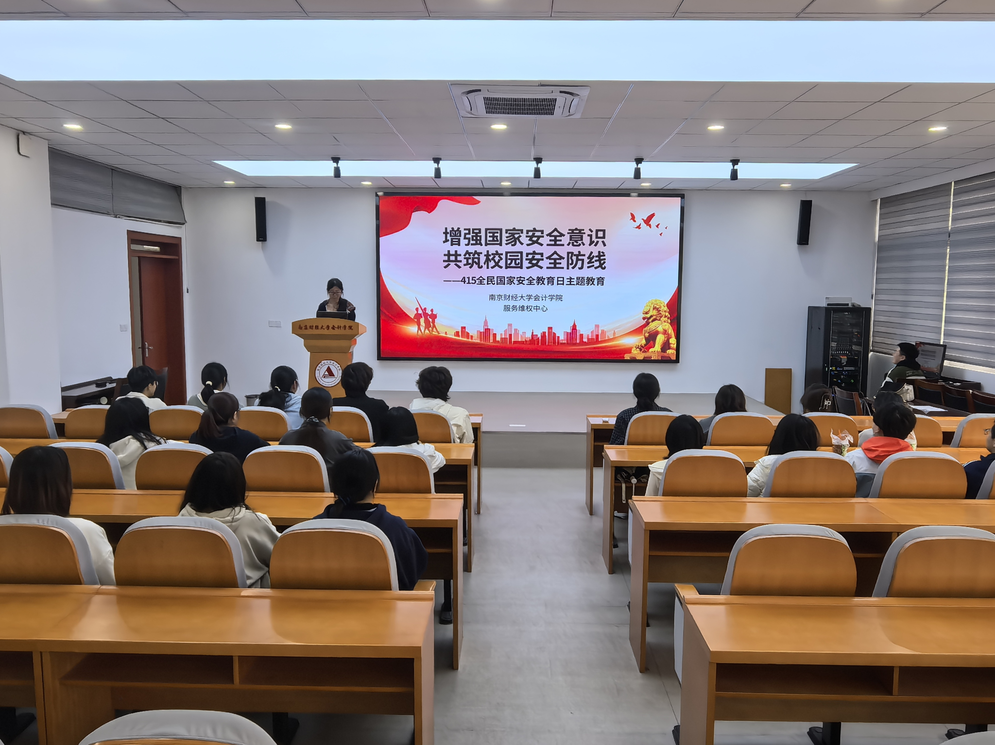 会计学院开展专题学习活动,主讲人结合典型案例开展警示教育,选取网络窃密、学术泄密、境外势力渗透、校园贷陷阱等真实事例,深入剖析案例背后的安全风险,细致拆解防范要点,引导广大青年学子筑牢思想安全防线、主动践行安全责任。