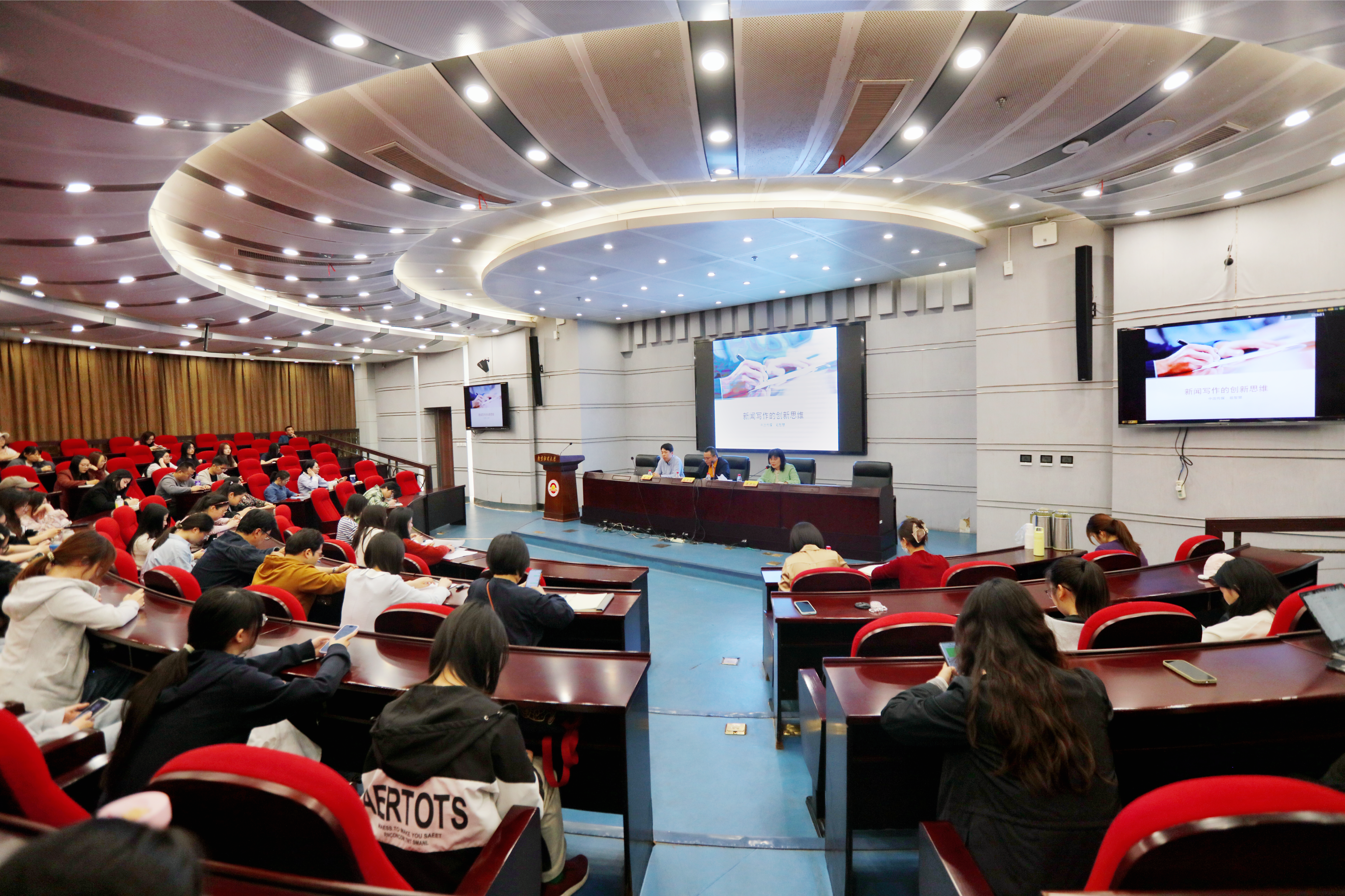 4月27日下午,我校在仙林校区行政楼二楼报告厅召开兼职宣传员培训会。中国发展改革报社、中国发展网品牌栏目部主任祖智慧应邀作了题为“新闻写作的创新思维”的讲座。党委宣传部副部长(挂)席飞、各单位兼职宣传员、党委宣传部相关人员、学生记者代表参加培训。培训会由党委宣传部副部长龚莉红主持。